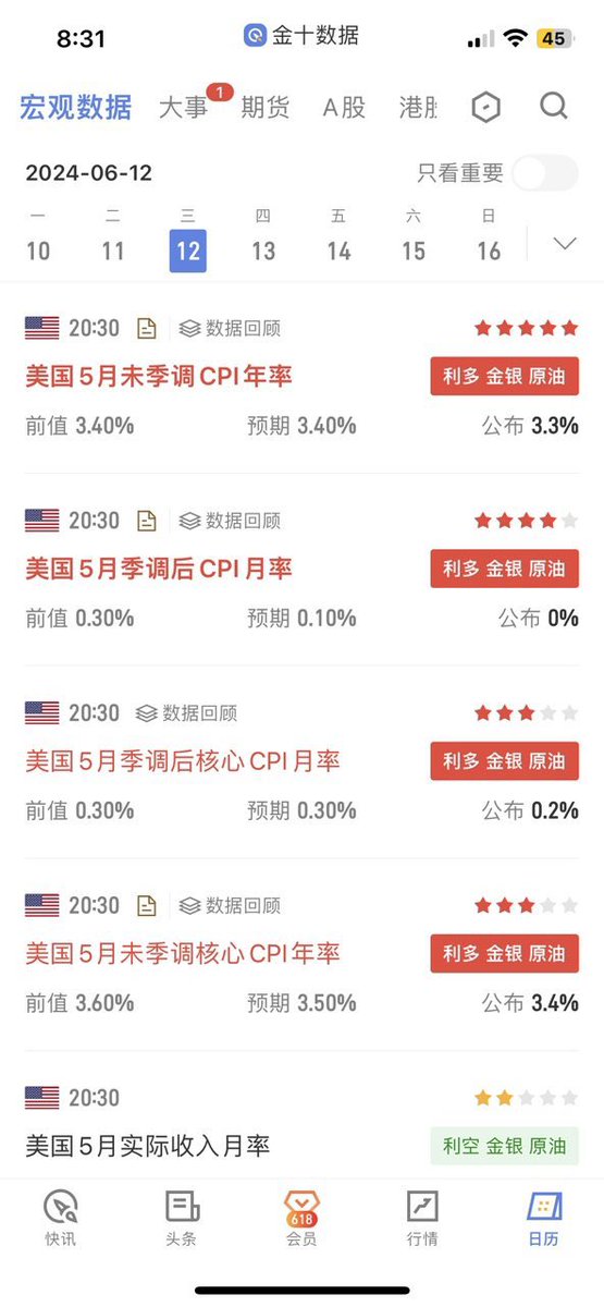 5月未季调CPI年率录得3.3%,低于市场预期中值3.4%;季调后CPI月率录得0.0%,低于市场预期的0.0%。