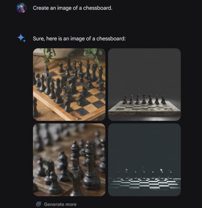 最搞笑的是下图:如果你要求它画个国际象棋棋盘,你猜怎么着,画出来的棋盘上两边都是黑子。