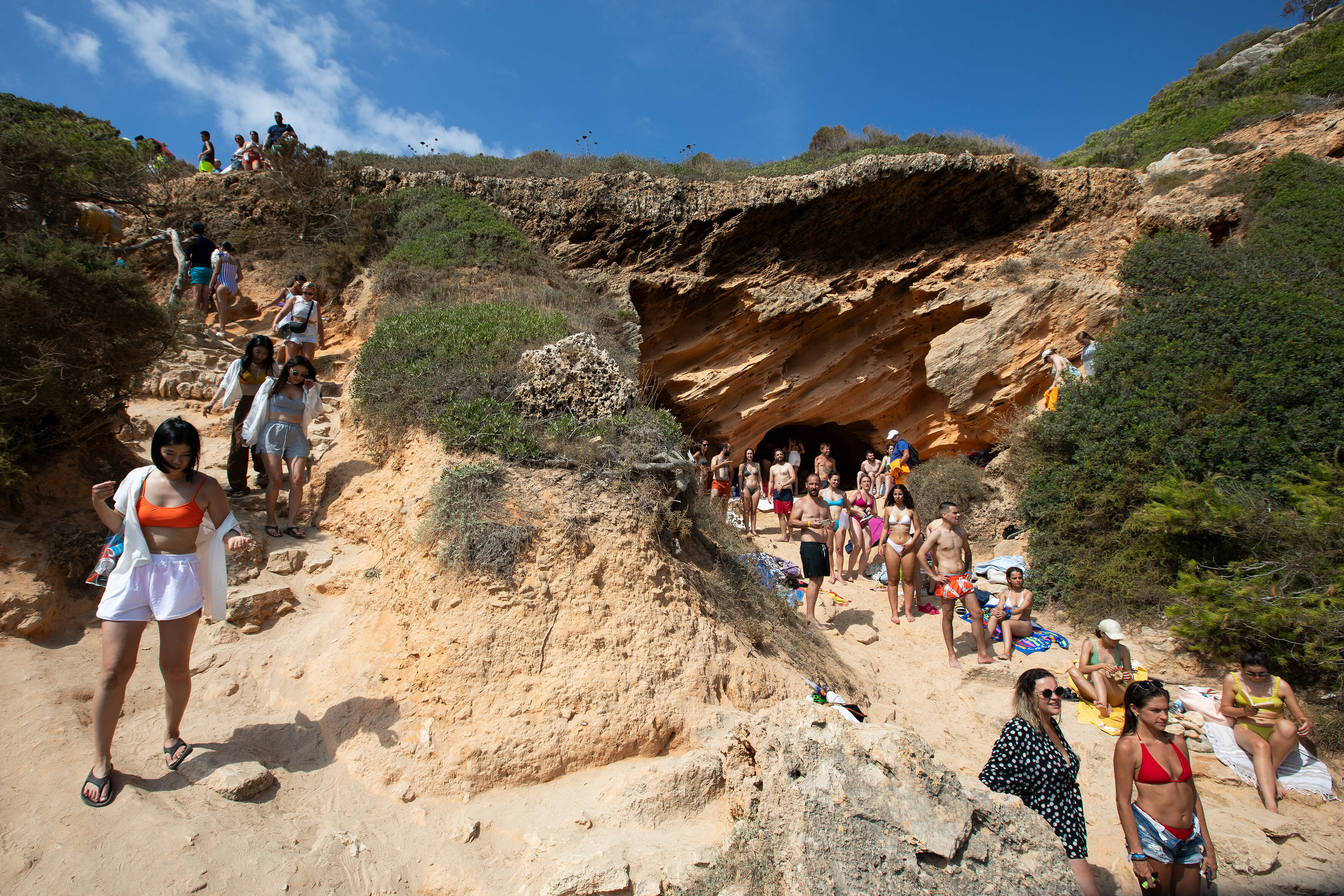 Esta cala está condenada a la saturación de turistas, que esperan pacientemente para conseguir un hueco en la que probablemente es la zona de la isla más perjudicada por la publicidad de los influencers