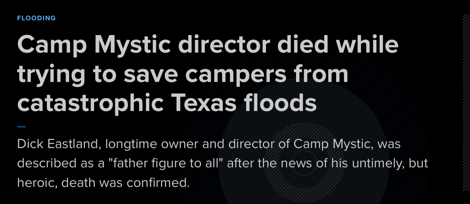The flood is moving into canyon lake rn. Being 40 some percent down under drought hopefully it holds. Two camp owners are dead, one checking on his campers and another checking on her staff as she didn’t have kids on-site at the time.