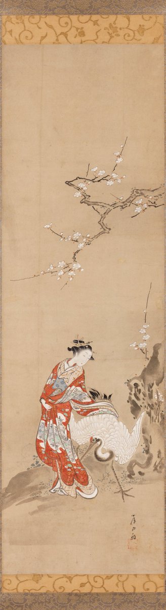 日本川又常政的《鹤与美人林清的戏仿》,18 世纪中期。 https://t.co/qE8Vi5e3KS