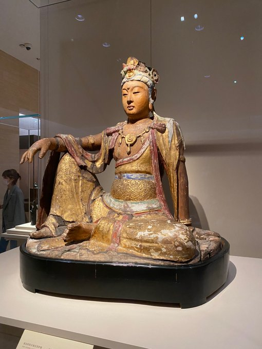 漆金彩绘木观音菩萨像。现实圆润的面容。北宋( 960 ~ 1127 年)。