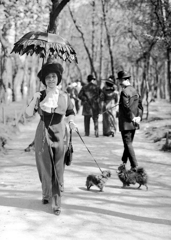1910 年,优雅的女士在巴黎布洛涅森林遛狗。 https://t.co/Co1wEv8fJL