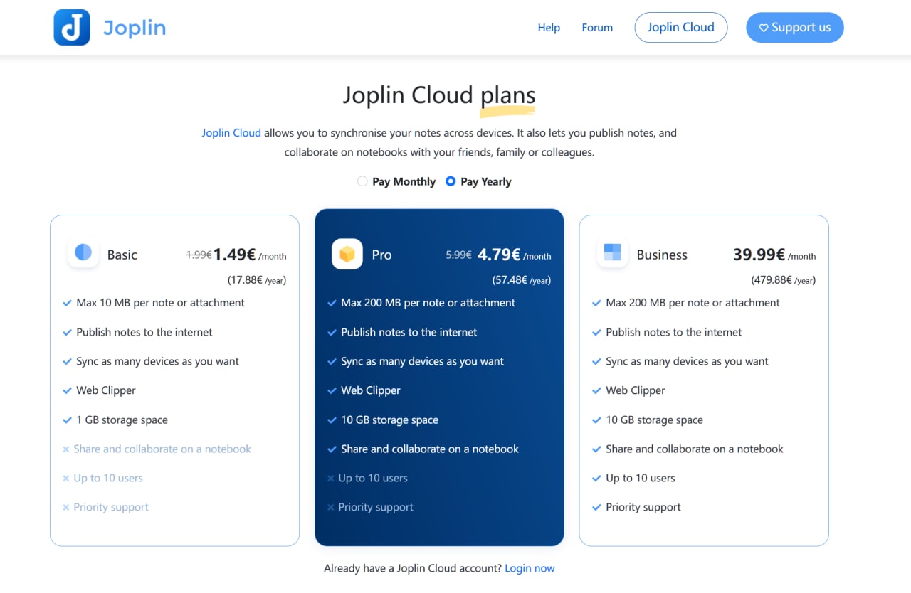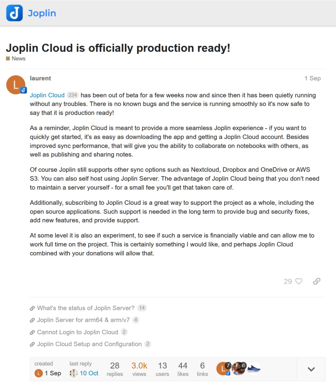 今天才知道 Joplin 的云同步服务 Joplin Cloud 九月份就已经正式发布了.🌚 ~~好贵啊~~