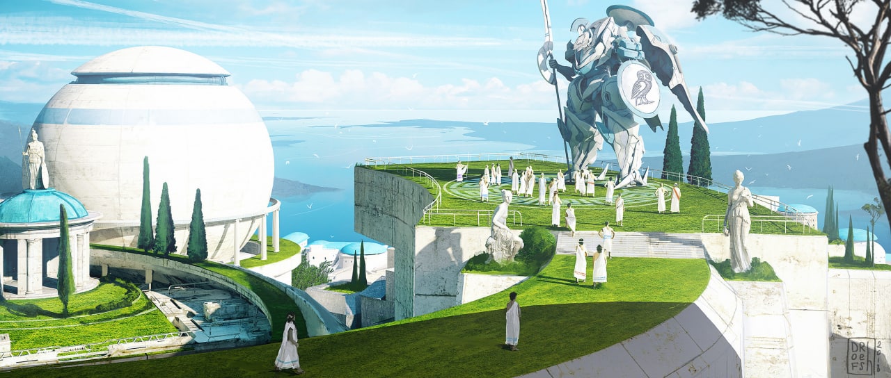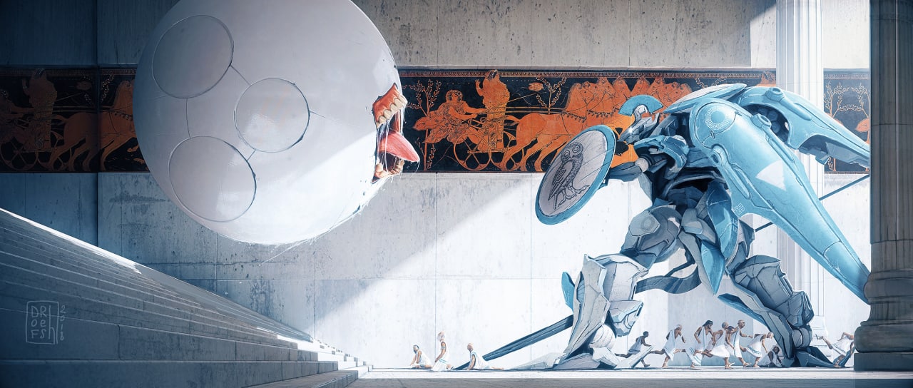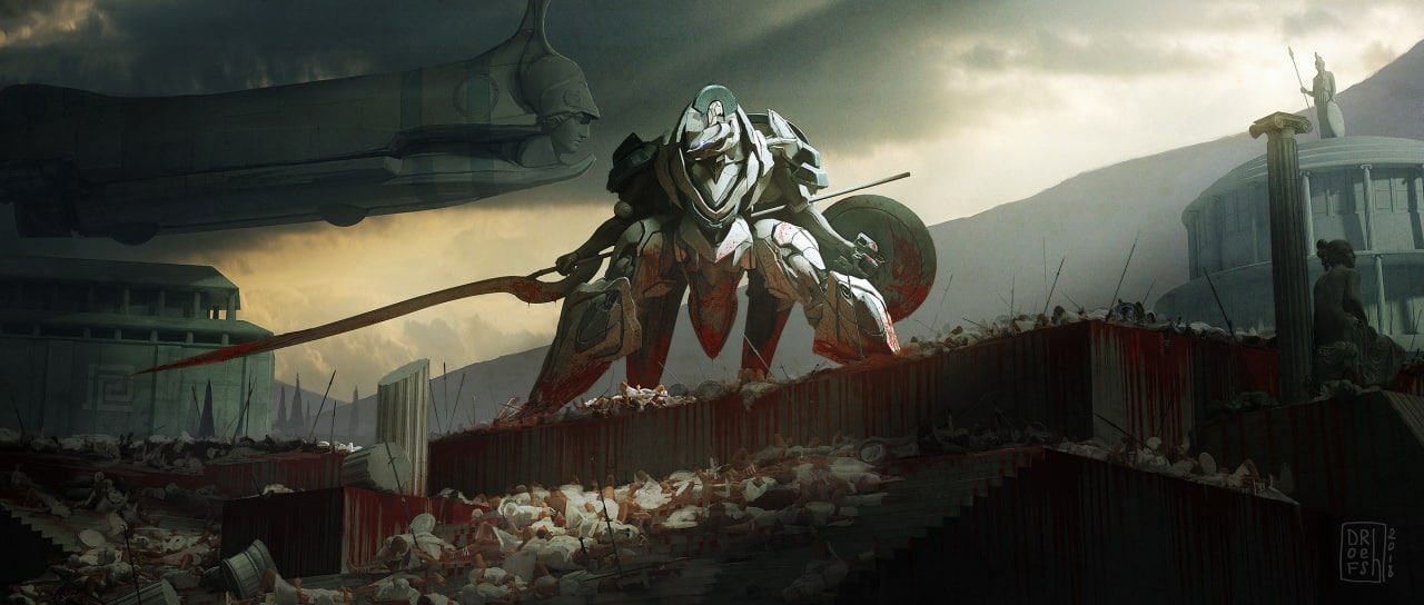 对于 P2 描绘的可能是雅典保卫战,至于这个图片顺序,我也只是按照 Artstation 上面的发布顺序排(P5),倒过来看其实好像也挺合理的;