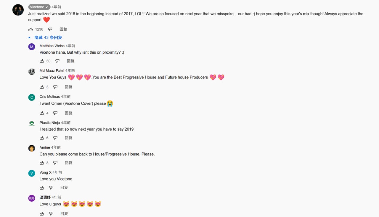 今天在整理音乐的时候发现 Vicetone 的 2017 End for the Year Mix 在 intro 的时候念成了 2018😂听了好几次现在才发现.