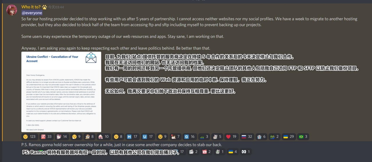 著名原神数据库网站 Honey Impact 因为乌俄冲突遭到服务商终止托管.