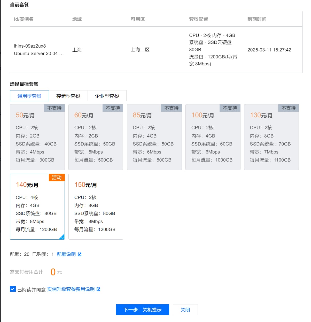 腾讯云给旧版 2C4G 8M / 1.2T 的轻量机器可免费升级到 4C4G.