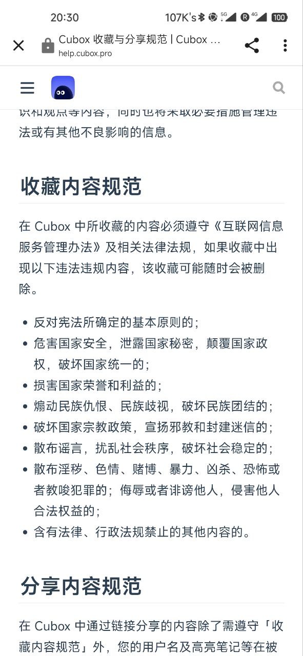 Cubox 能做到这一步算是很难以置信了,一个不公开的数据存储服务,还是要做到自律。