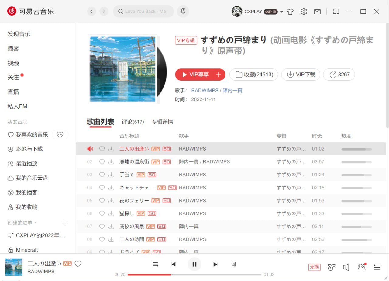 网易居然买了 CoMix Wave Films 的版权, 铃芽户缔的专辑也变成了 VIP 就能听了.