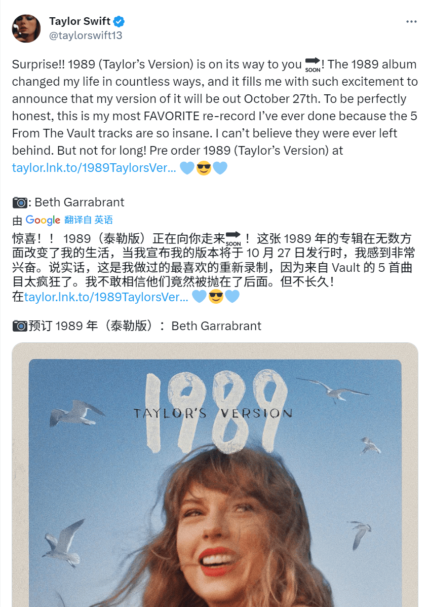 1989 (Taylor’s Version) 可还行, 不如就叫 1989 (Remaster) 多好🤨.
