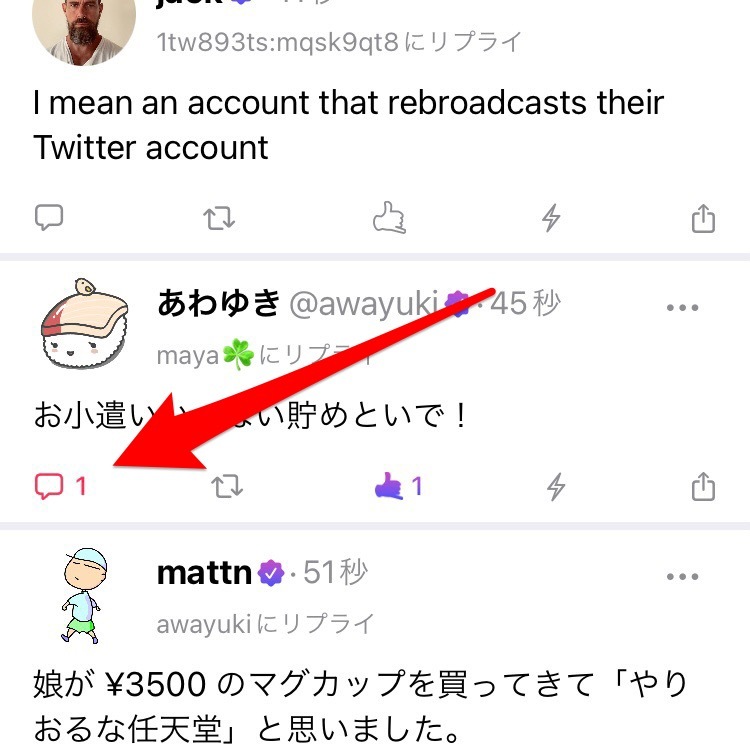 Damusテストフライト版最新、自分へのリプライ?が赤くなった?