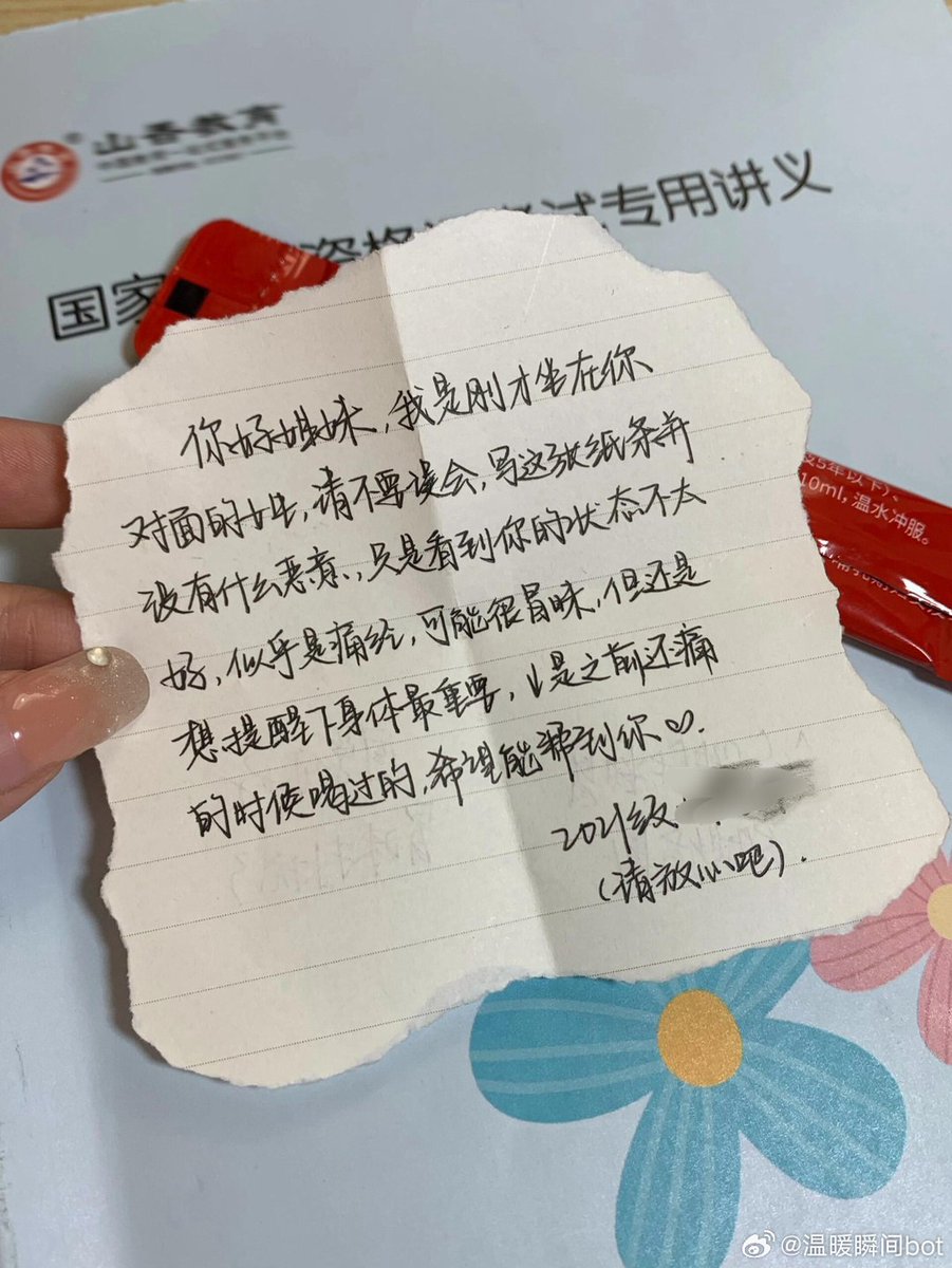 中午吃饭回来看到的这个纸条,真的说不出什么心情,已经疼的感觉自己都不是这个世界的人了…