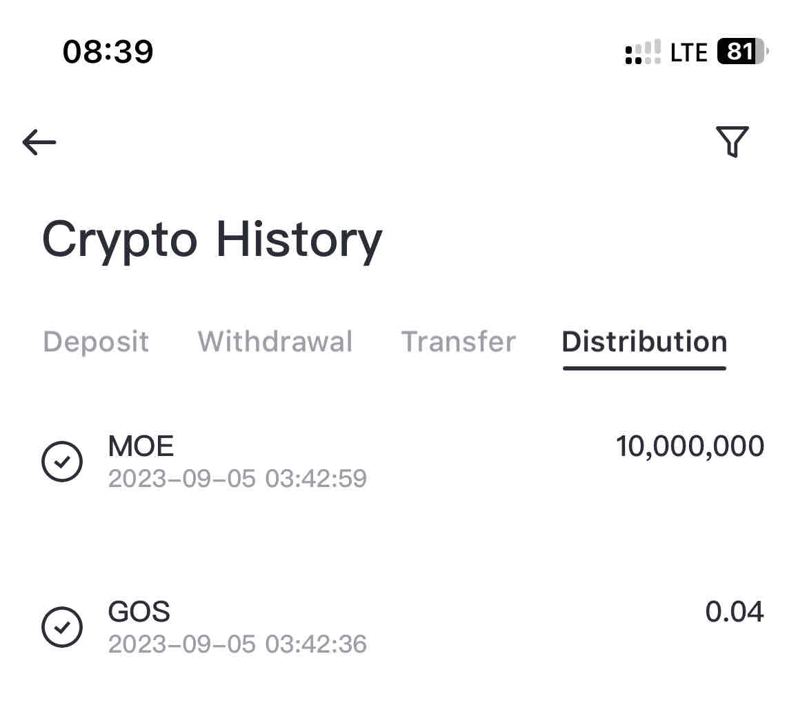 $MOE & $GOS distributed on #BITMART