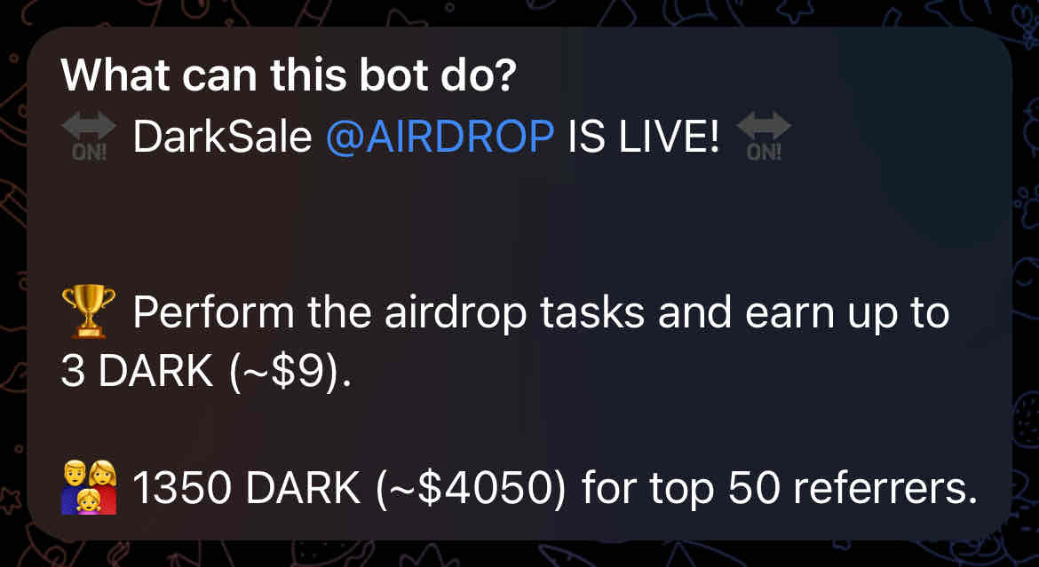 π https://t.me/DarkSaleAirdropBot?start=5734791541