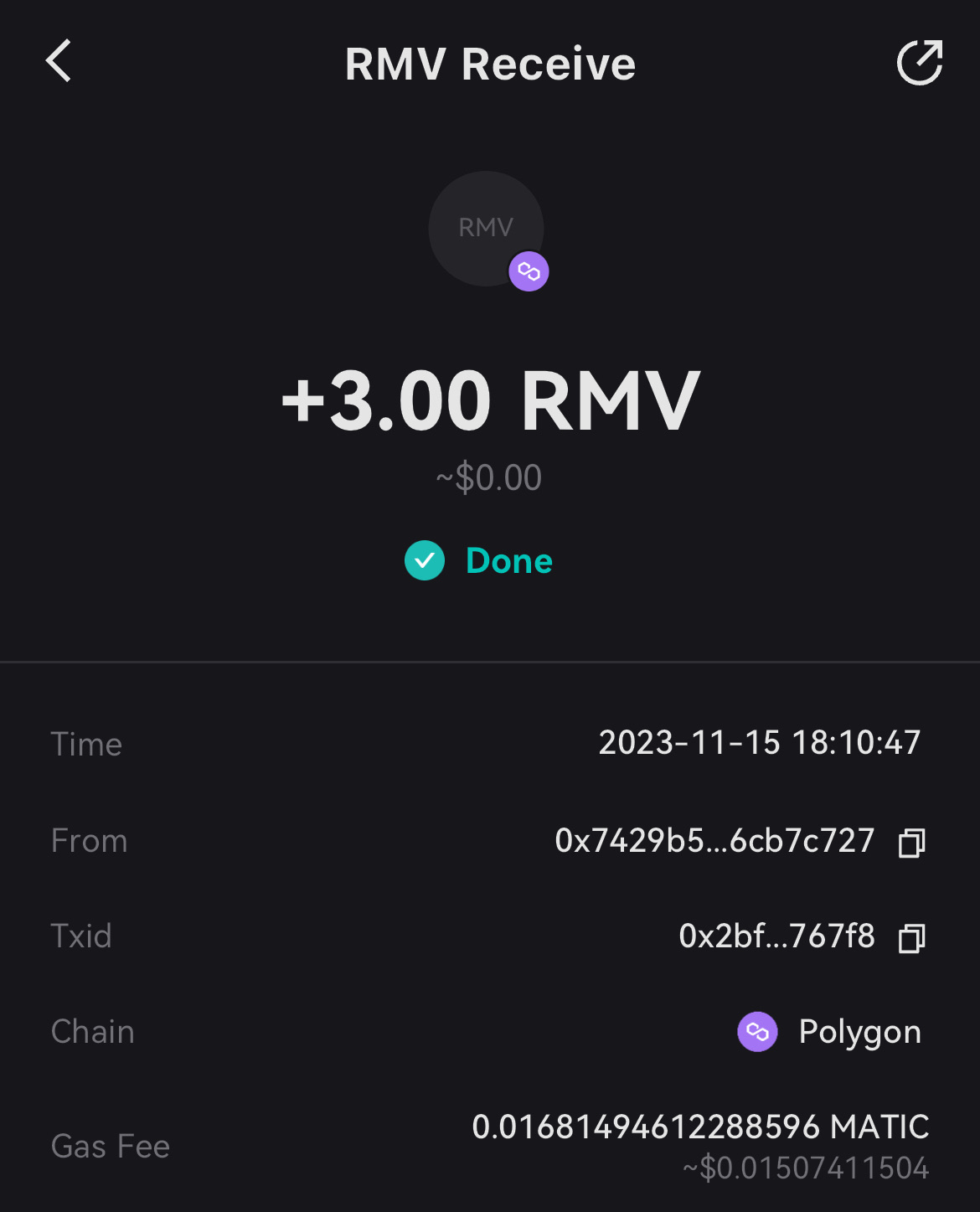RealityMetaverse $RMV distributed / ongoing on POLYGON