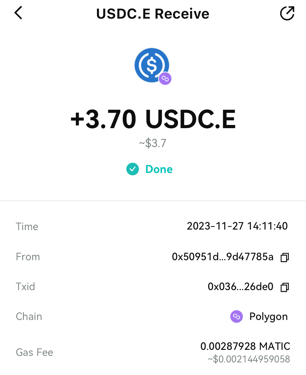 USD Coin (PoS) ($USDC.e) distributed / ongoing on POLYGON