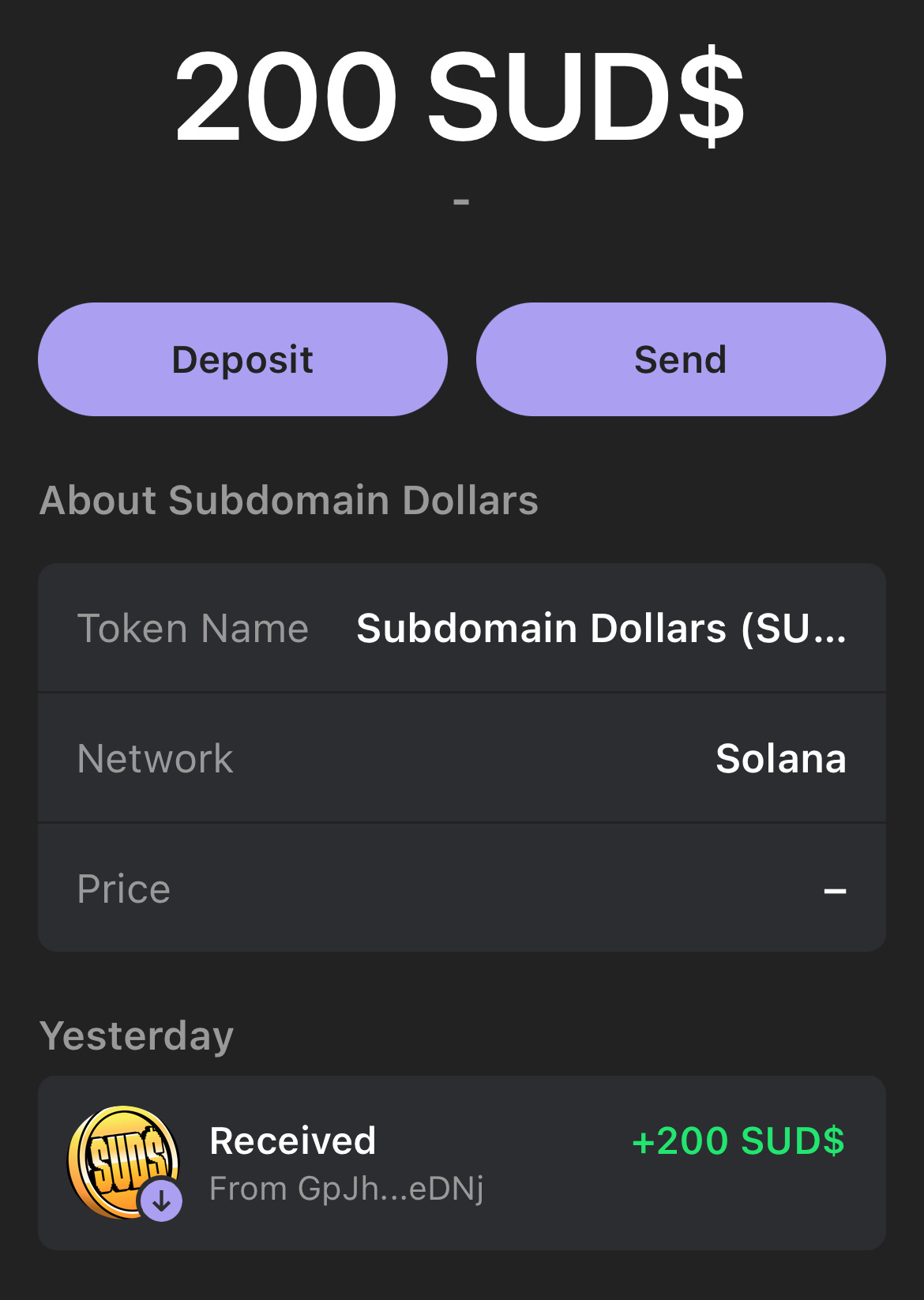 Subdomain Dollars $SUD distributed / ongoing on SOLANA