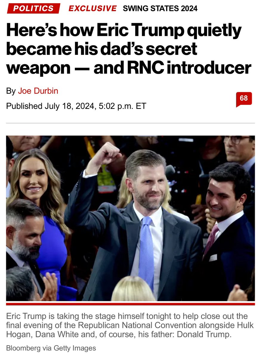 I am honored to announce that at 3:30pmET, alongside my family, I will cast the vote which will declare Donald J Trump the 2024 Republican Nominee for President of the United States.