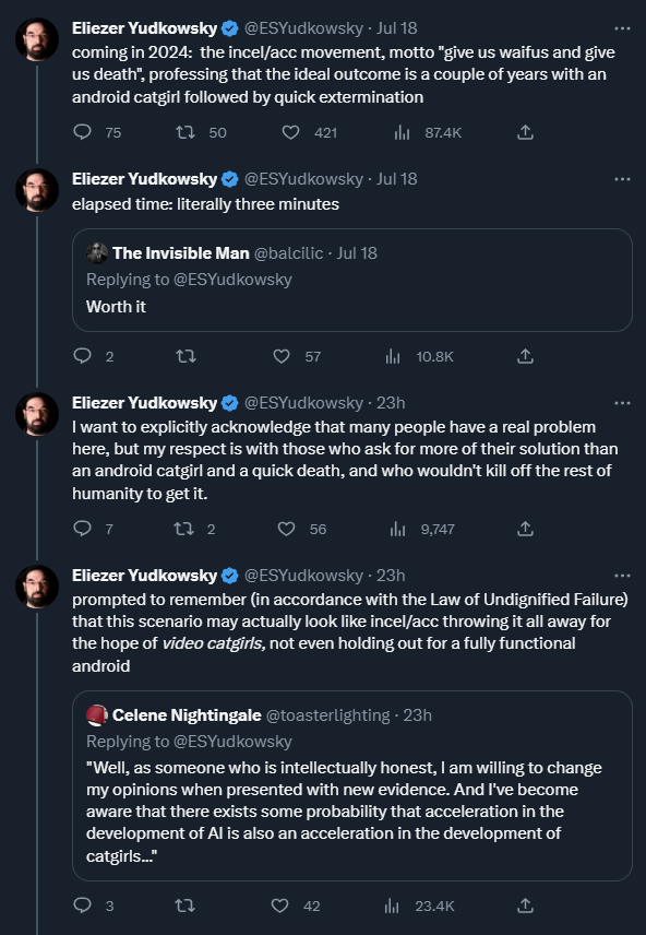 AI antis like (((Yudkowski))) show their true colors with statements like these proving that they want to deny you pleasure even in the privacy of your own home. Their control over your life must be absolute, with no escapism. All technology must be centrally controlled and you are immoral for even wishing to run your own models as you see fit, because it shows you desire for a world free from the ZOG.