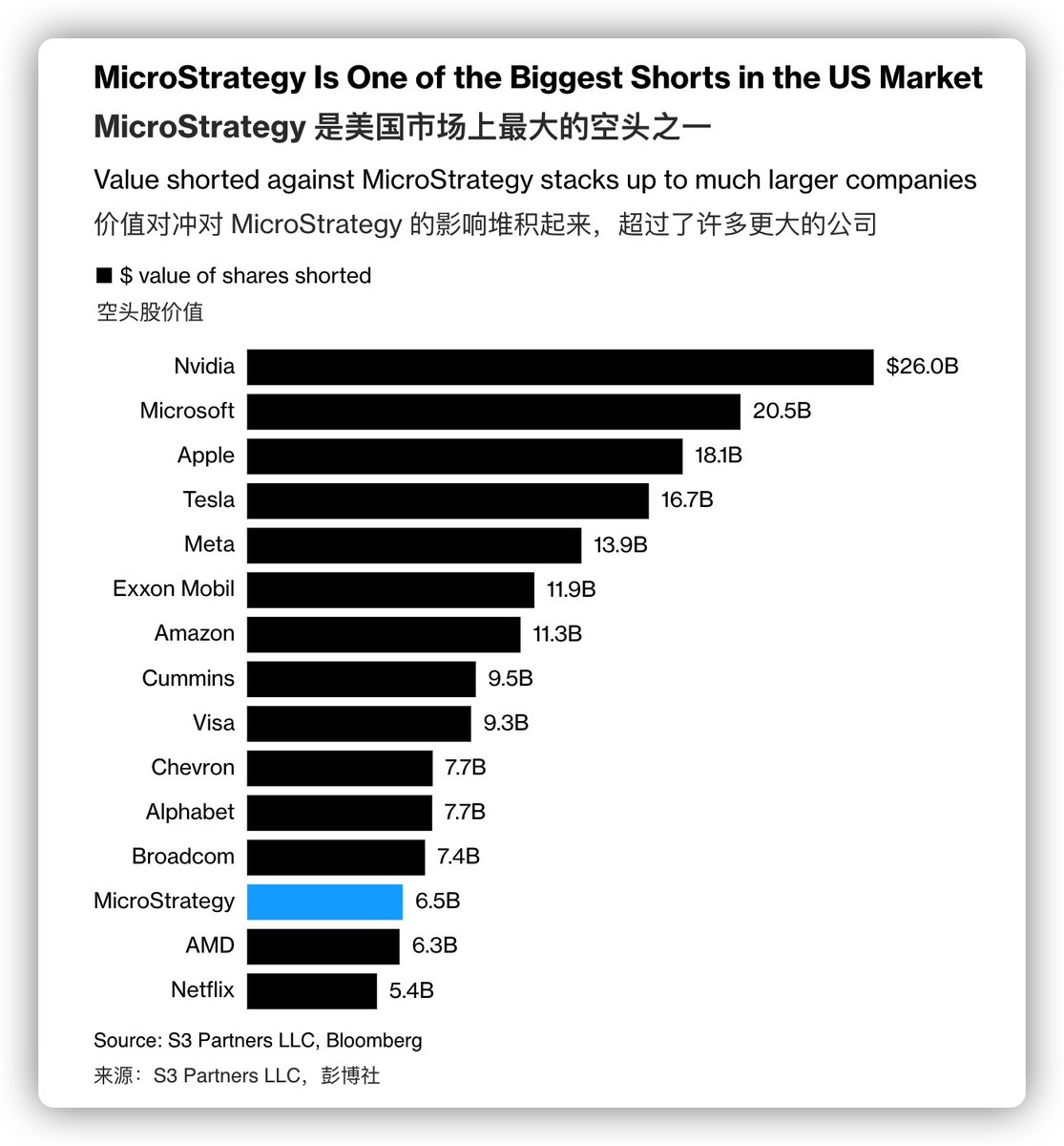 目前美股上做空MicroStrategy 的仓位甚至超过了许多其它大公司。 https://t.co/YlLqtTRAzS