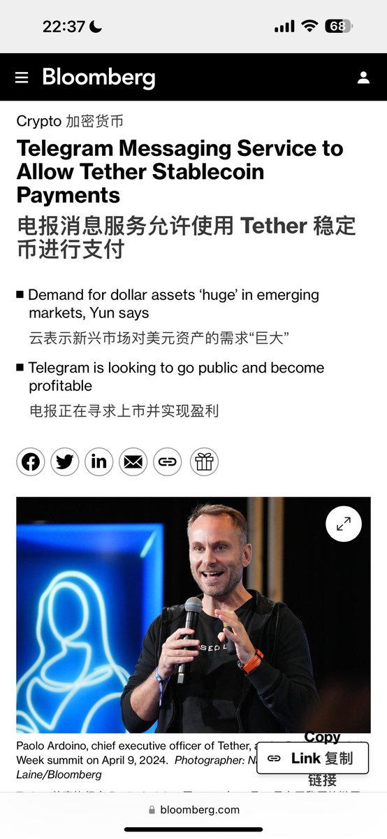 可能很快就可以在电报群上使用usdt发红包了。 https://t.co/KexVj0TvKl