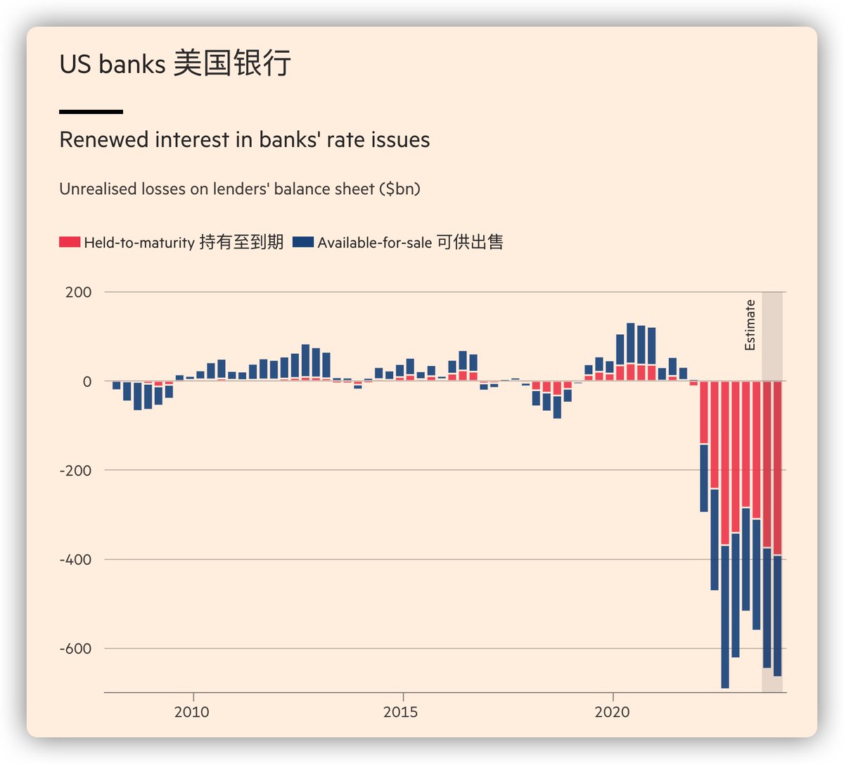 美国银行最不透明的债券组合的纸面损失现已接近 4000 亿美元,创历史新高,比去年初峰值高出 10%......”
