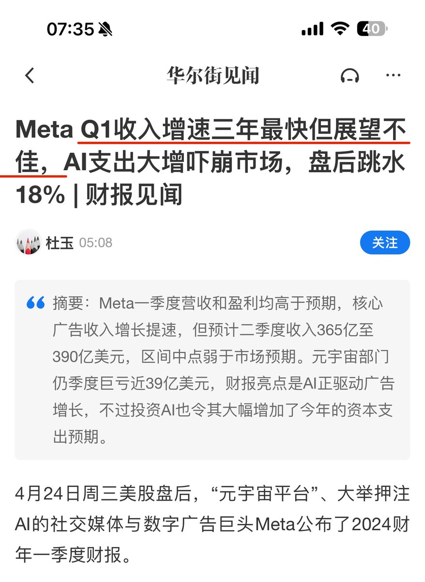 你说Meta冤不冤,财报这么漂亮,连续5个季度超预期,因为一个前瞻展望不是太积极股价盘后就能跌去18%。 https://t.co/13szrvrxd3