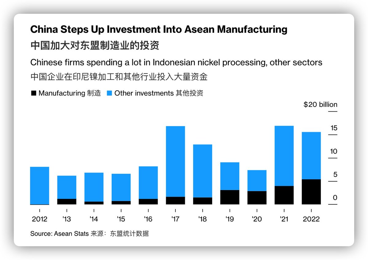 本周发布的另一份报告显示,中国在东南亚国家联盟(ASEAN)地区的制造业投资激增,去年几乎增长了四倍。金额达 260 亿美元,几乎是美国、韩国和日本企业总和的两倍。
