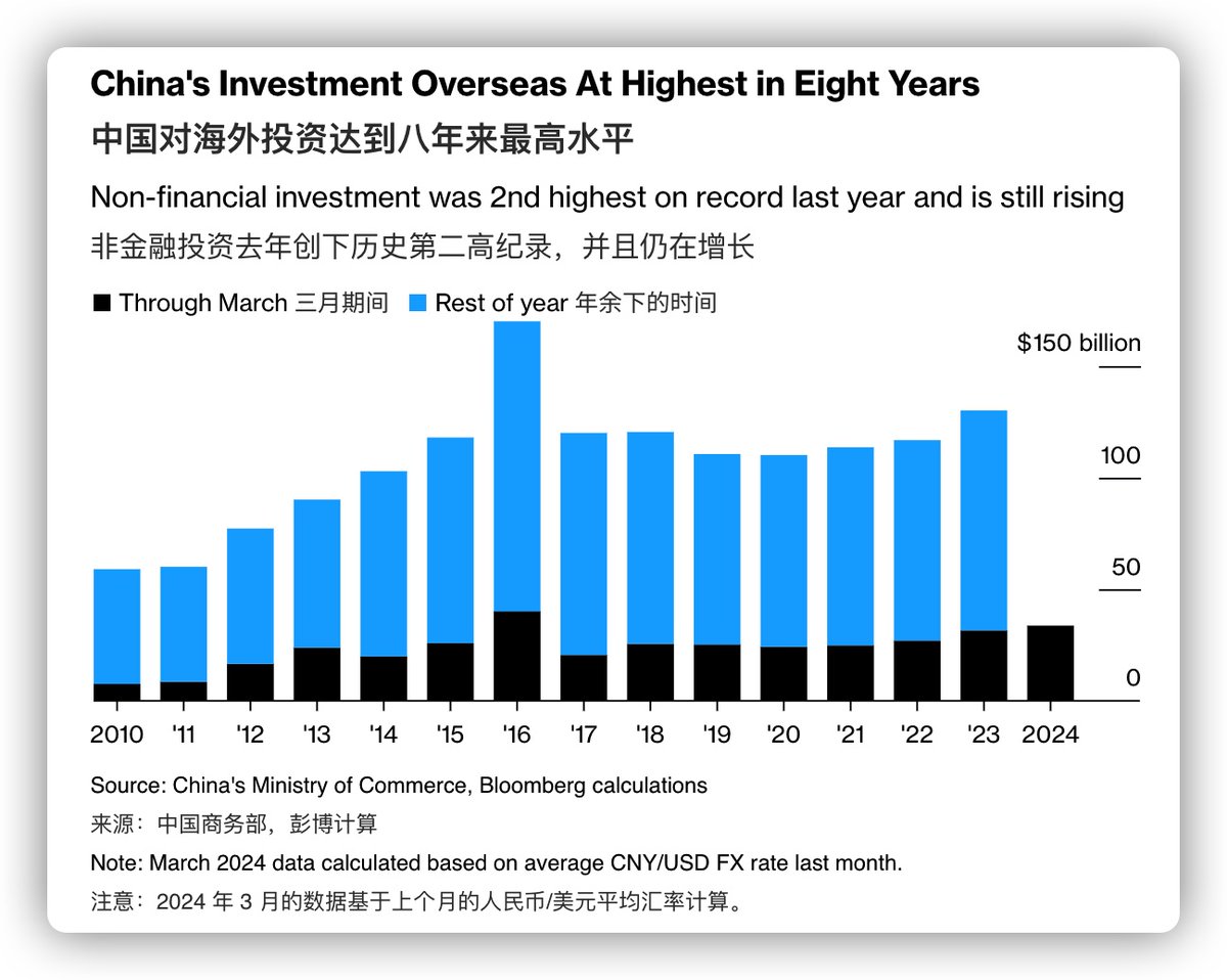 分享一个中国企业出海数据。中国对海外投资达到八年来最高水平。