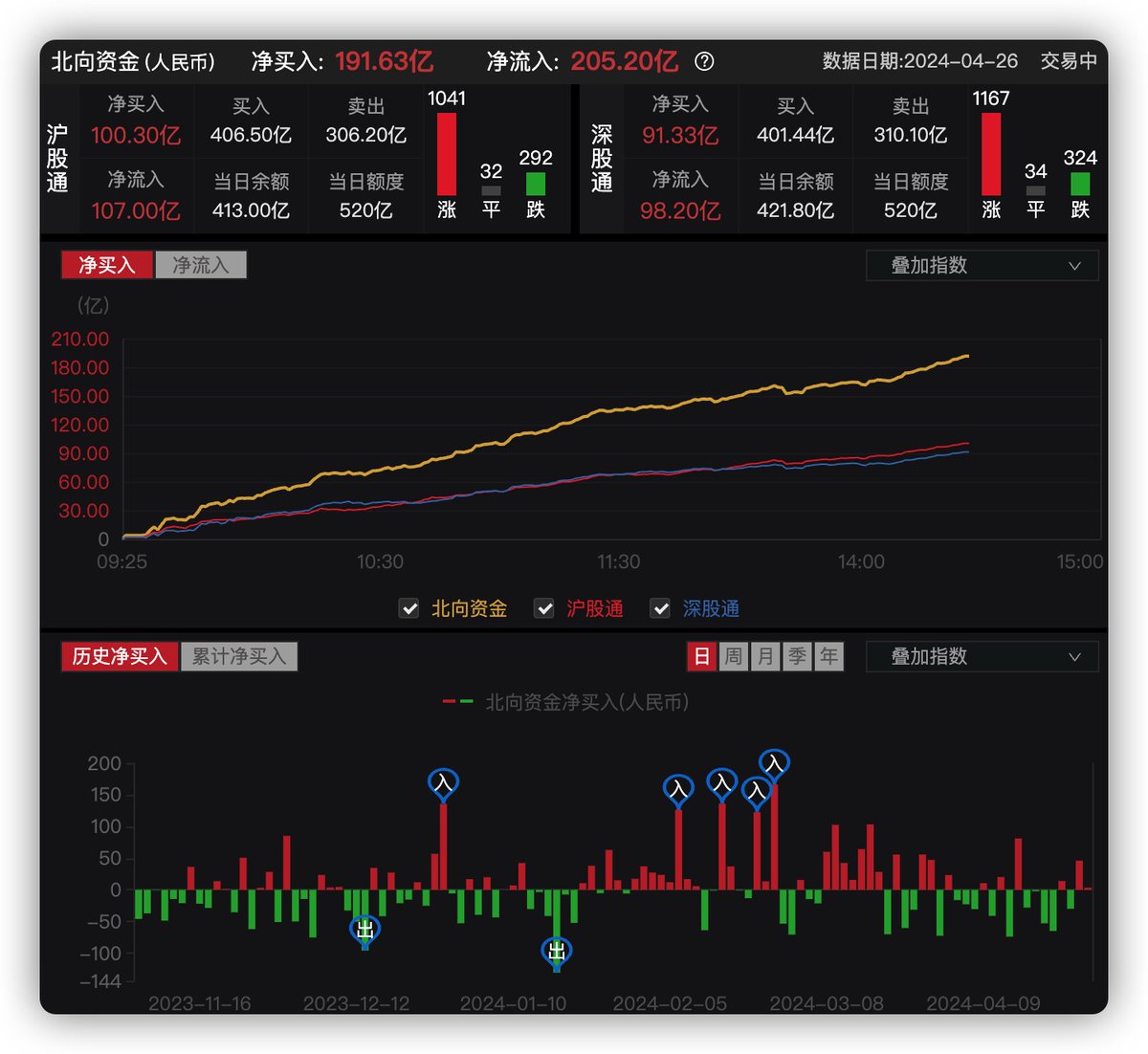 最终224.49亿元,2014年以来最高的一个单日北向资金净买入。