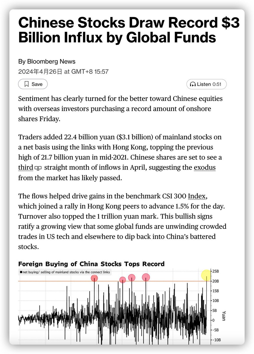 我认为今天北向资金的买入创陆港通开通以来的最高纪录可能跟中国央行即将在二级市场买卖国债的更进一步推进有比较大关联。 https://t.co/fqFPhiTcDW