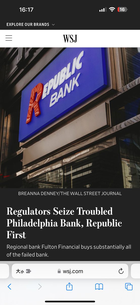 共和银行面临着与去年倒闭的三家地区银行相同的问题:随着利率上升,债券的纸面损失增加,以及高比例的无保险存款可能迅速流失。 https://t.co/rLWP79mjo0