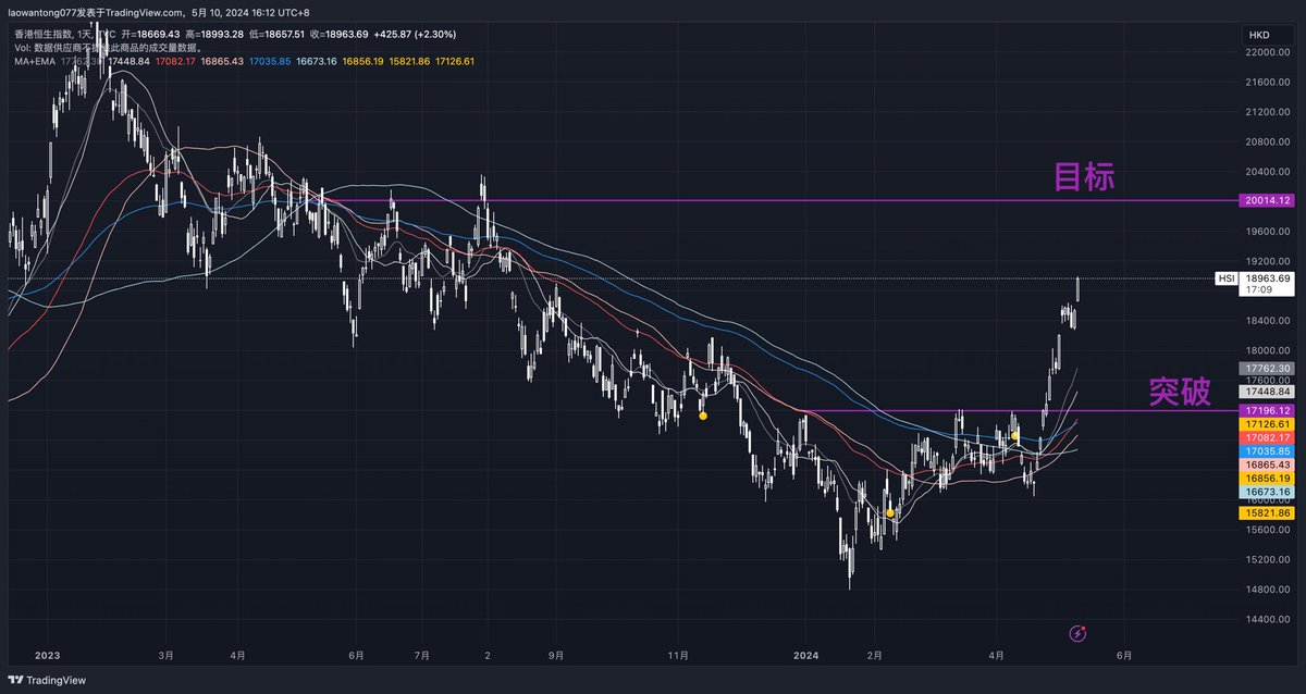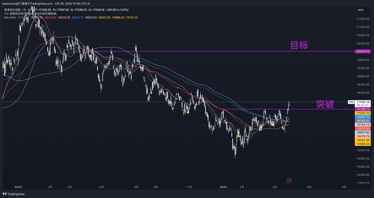 图一 4月26日画的,图二今天截的图 恒生指数 https://t.co/Iki7rEFllX