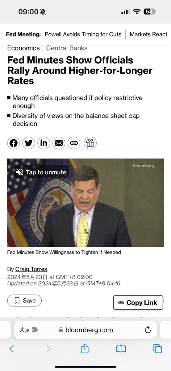 美联储的会议纪要显示FOMC委员整体比较鹰派,需要后面的有利宏观数据。 https://t.co/gVDPslODM3