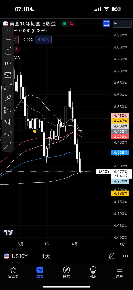 从上周五PCE数据低于预期,到ISM制造业不及预期、到职位空缺数大幅下降,到ADP小非农也大副下降,美10年期国债收益率连跌五天,最明显的市场反应就是比特币上涨,科技股、纳斯达克综合指数也放飞了。 https://t.co/Tfo0pzW8Ua