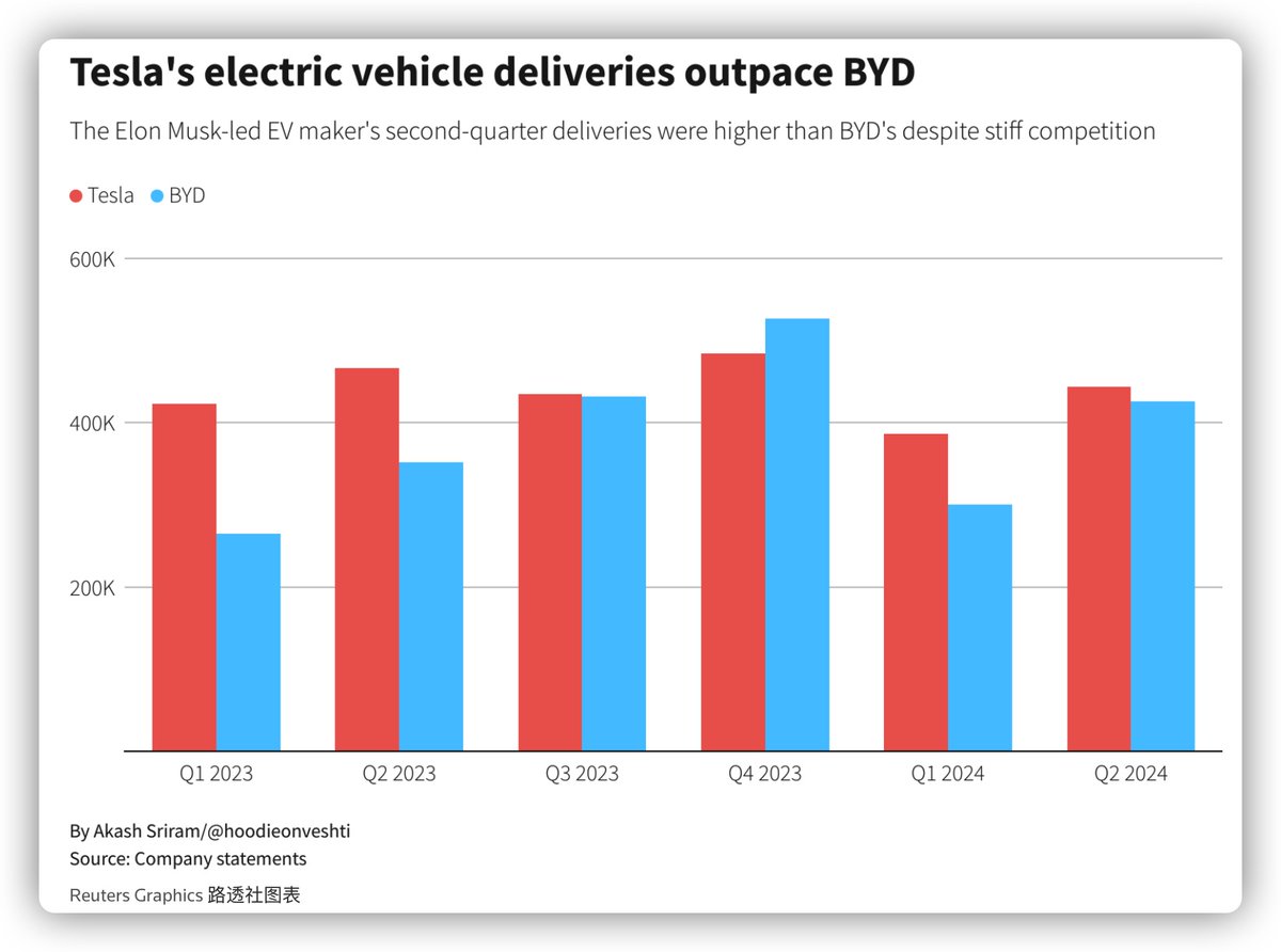 特斯拉与比亚迪的销量对比,比亚迪追得很紧。 https://t.co/8HlZmpNxHT
