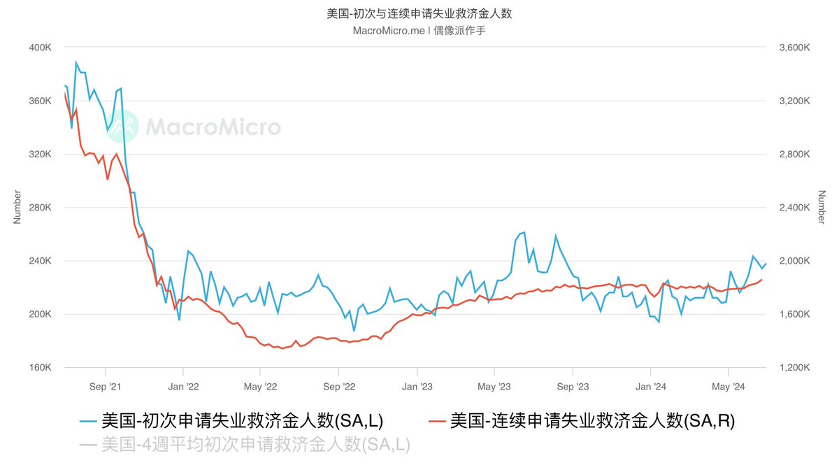 初领失业金人数和连续申领失业金人数都超预期,人数继续上升。 https://t.co/WFKm8AlwwH