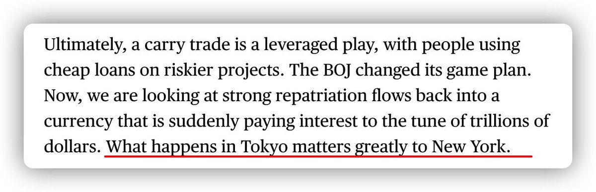日元套利的终结,为什么点燃了全球股灾的导火索。彭博社这篇文章很好地解释了这一点。 https://t.co/hbjK72SD8F