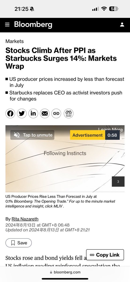 今晚PPI这数据市场喜不喜欢,看彭博社这篇标题就知道了吧。