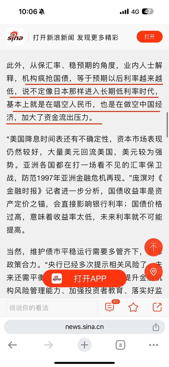 所以央行旗下的国内金融时报才不顾被笑话,写出什么“机构疯抢国债,等于预期以后利率越来越低,说不定像日本那样进入长期低利率时代,基本上就是在唱空人民币,也是在做空中国经济,加大了资金流出压力。”