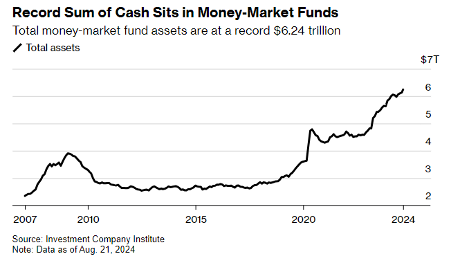 货币市场基金资产攀升至创纪录的 6.24 万亿美元。
