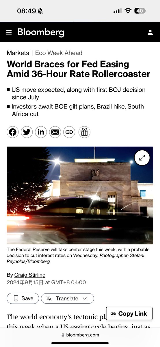 周五华尔街日报和金融时报两篇关于美联储降息多少的大讨论,再加上今天彭博社这篇,基本上可以确定,降息50个基点已经被美联储玩出是利好市场的一件事了。