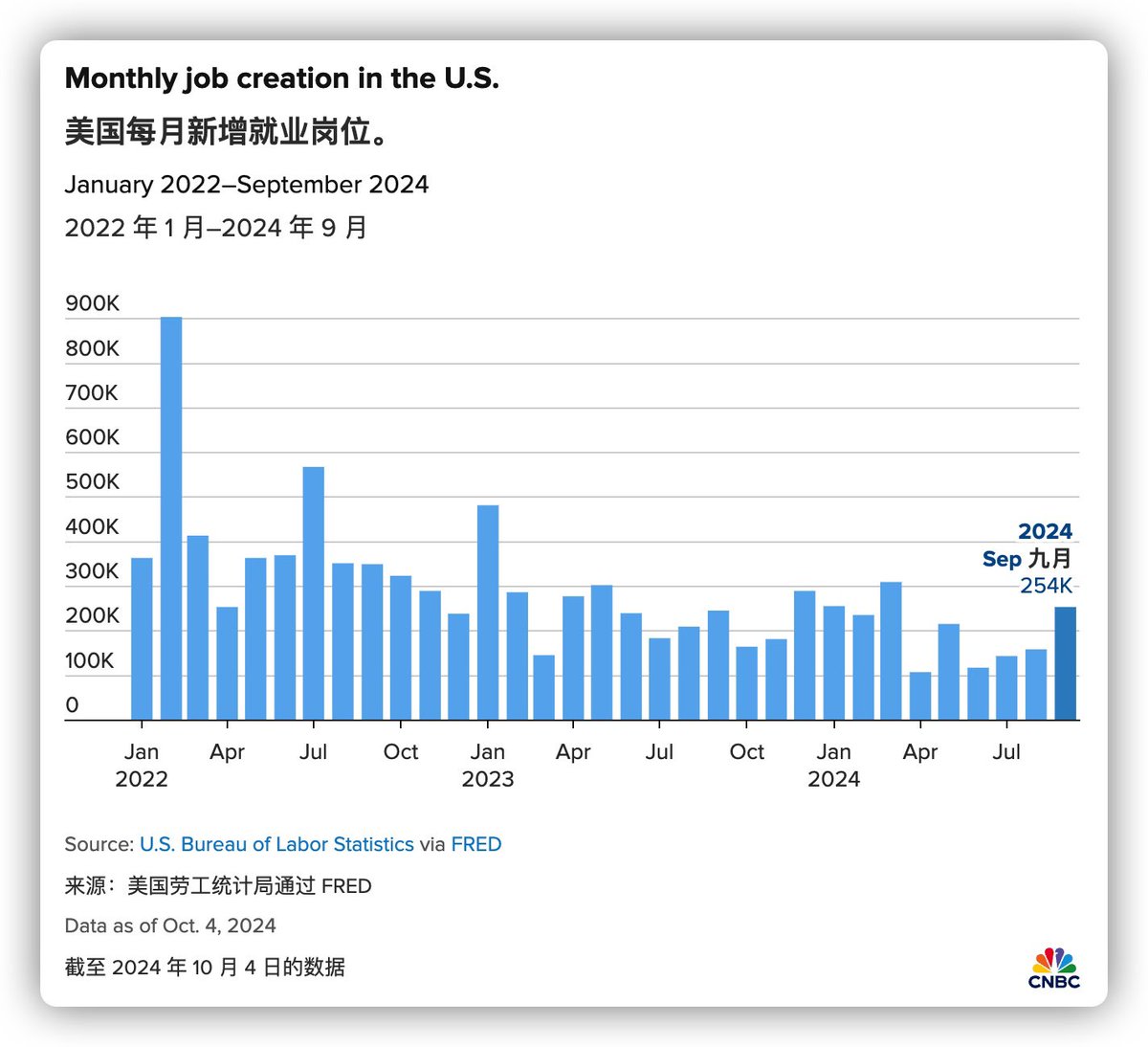 美国所有的数据里,非农应该是经济学家最难预测的,经常会有预期出入非常大的时候,这么好的就业数据,鲍威尔要偷笑了。 https://t.co/BXH51Qx8hR