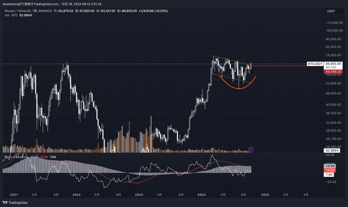 比特币周线,我们获得了一个圆润的底部。 https://t.co/9WcQDpwPv1