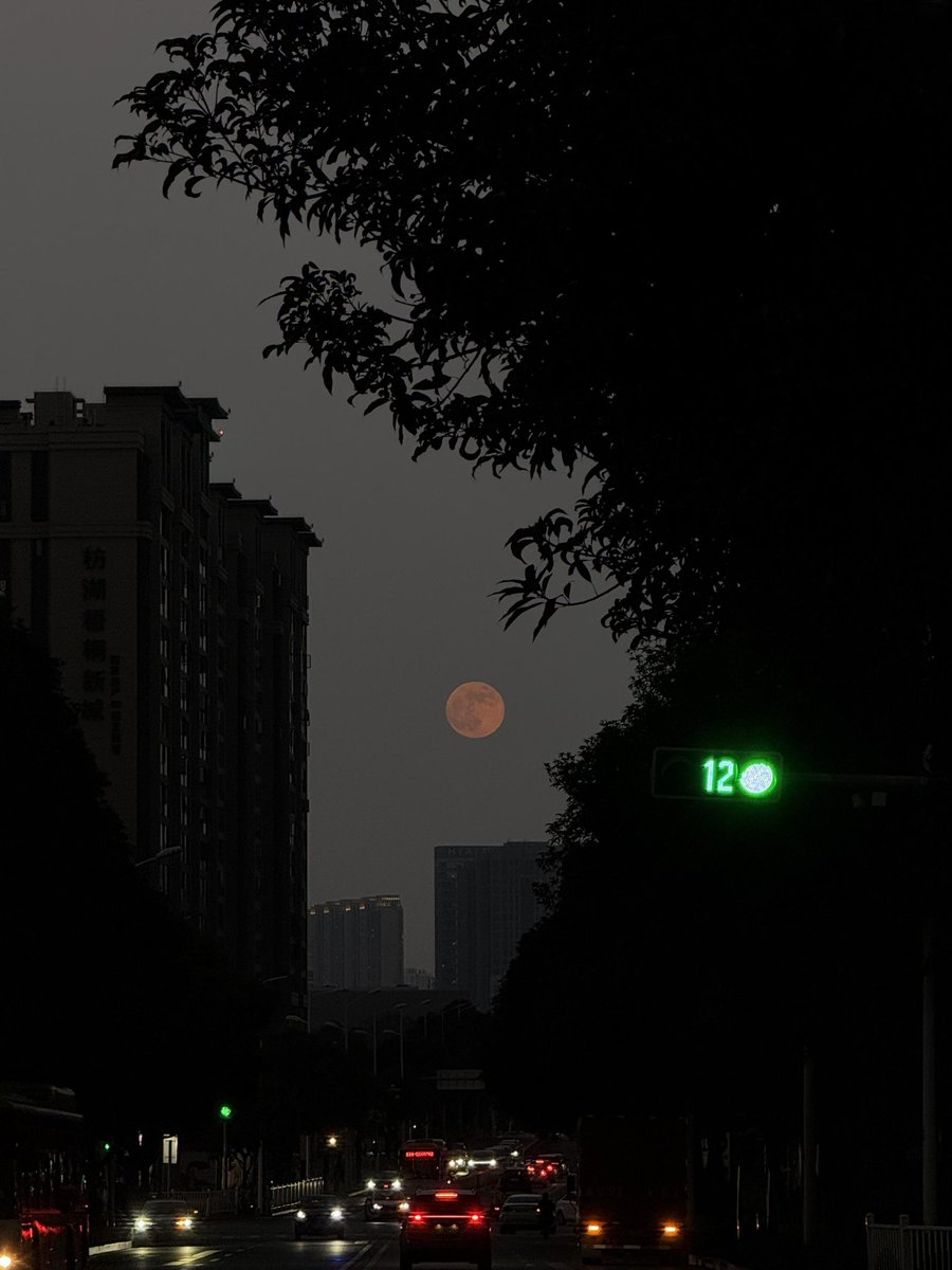 天上挂着一轮红月亮
