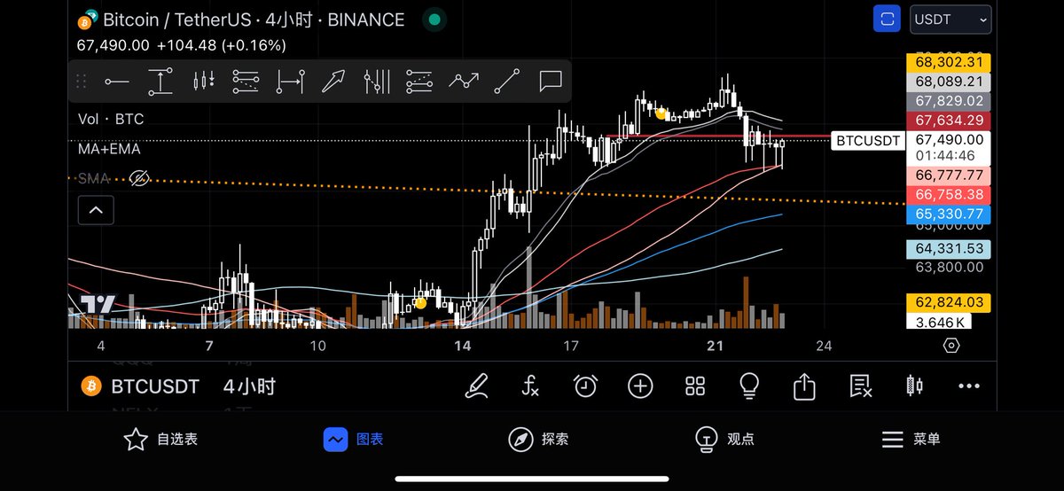 比特币4小时线级别60均线位置是个不错的防守位,众所周知,做一笔交易前先找到防守位。 https://t.co/HYSPcWw5hd