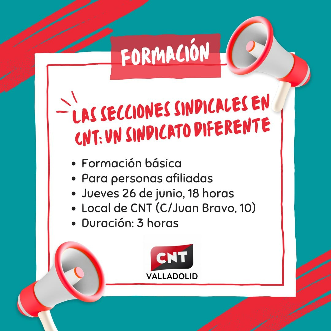 Os informamos de una nueva formación básica sobre #CNT 'Un sindicato diferente: Las secciones sindicales en CNT', y en ella vamos a compartir cómo puedes unirte con tus compañeres de trabajo y cambiar a tu favor las condiciones laborales en tu empresa o tu empleo, según las