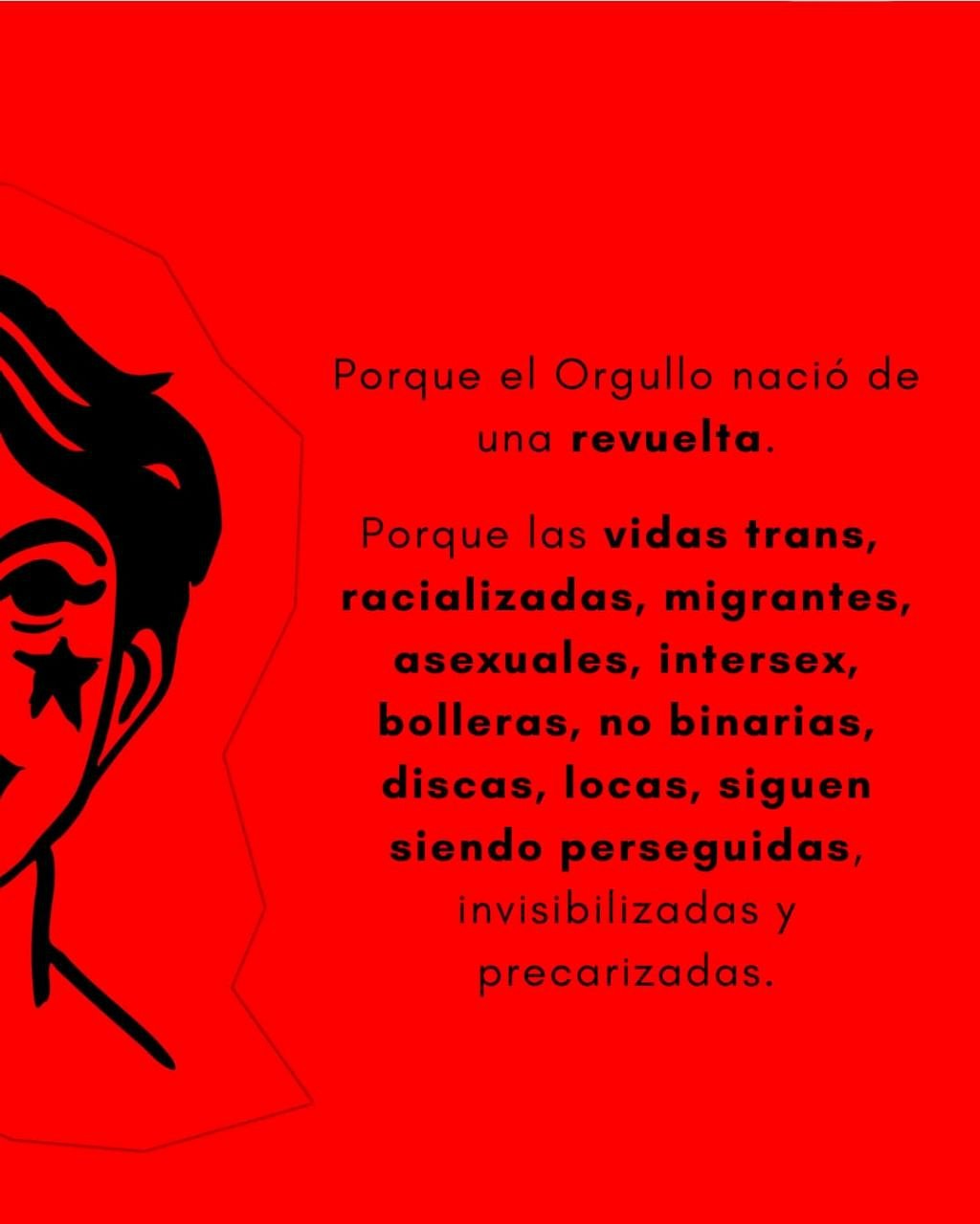 Porque el #Orgullo nació de una #Revuelta de vidas perseguidas, invisibilizadas y precarizadas.