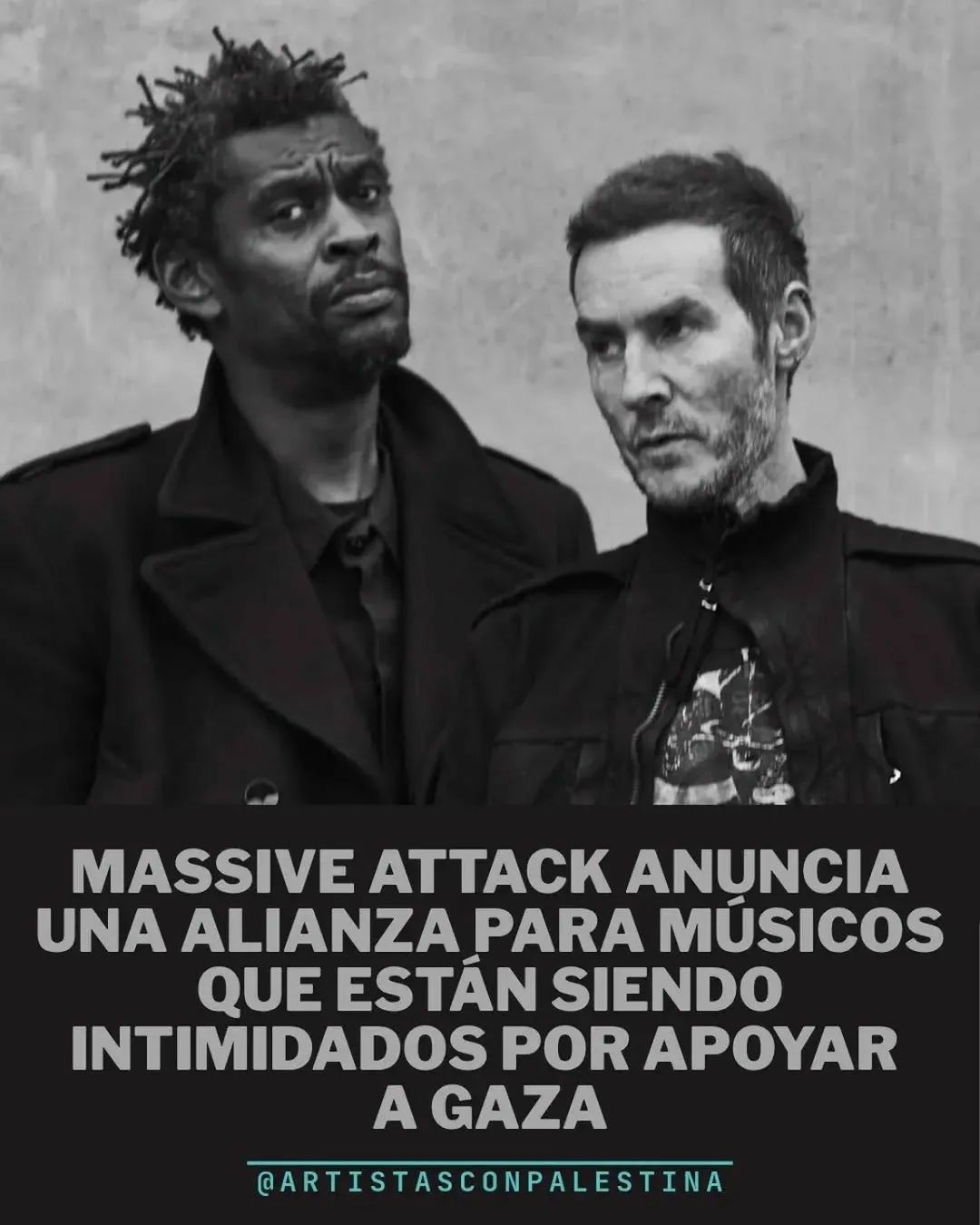 Massive Attack publicó en redes sociales #RRSS una declaración en la que informan que están formando una alianza de artistas que se han manifestado públicamente sobre el #genocidio en #Palestina, y que han sido objeto de intentos de censura y otras formas de cancelación profesional, como ser excluidos de festivales, entre otras medidas. "Las escenas en #Gaza han superado cualquier descripción. Escribimos como artistas que han decidido usar sus plataformas públicas para hablar sobre el #genocidio que ocurre allí y sobre el papel del Gobierno del #ReinoUnido en facilitarlo", comienza el comunicado. "Por expresar nuestra conciencia, hemos sido objeto de diversas intimidaciones dentro de nuestra industria (en vivo y grabada) y a través de entidades legales organizadas como #UK Lawyers For #Israel, cuyas actividades finalmente han sido expuestas en un nuevo documental proyectado anoche por el colectivo Led By Donkeys." "Tras haber resistido estas campañas de censura, no permaneceremos en silencio ni permitiremos que otros artistas, especialmente quienes están en etapas más tempranas de sus carreras o en situaciones de mayor vulnerabilidad profesional, sean amenazados hasta quedar silenciados o cancelados. En este espíritu, animamos a los músicos que hayan estado en esta posición, o a quienes deseen ahora usar sus plataformas para hablar sobre #Palestina pero temen represalias industriales o legales, a que contacten con nosotros." El comunicado finaliza con un listado de denuncias colectivas que Massive Attack y los artistas que los apoyan han elaborado. Este incluye: - Acceso inmediato y sin restricciones de agencias internacionales de ayuda humanitaria reconocidas, sin amenaza militar, en toda la franja de #Gaza. - Fin al ataque sistemático contra trabajadores médicos y de ayuda humanitaria. - Fin a las licencias y ventas de armas del #ReinoUnido a #Israel. - Un cese al fuego inmediato y permanente. - Una #Palestina libre. Otros artistas que respaldan la iniciativa son Kneecap, Fontaines D.C., Brian Eno y Garbage. Fuente: #arderprimermovimiento